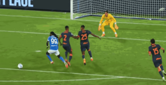 第56分钟劳塔罗禁区内头球攻门,皮球打在了布翁乔尔诺的手上,主裁回看VAR后给了蓝黑军团一粒点球,恰尔汗奥卢主罚命中,将比分追至1-2,但国米并没有高兴太久,10分钟之后,那不勒斯边线球掷出后,安古伊萨一条龙破门得分,将全场比分定格为了3-1。